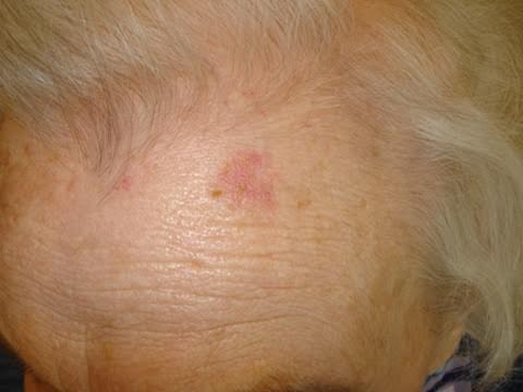 Parasti šo slimību pamana tās otrajā stadijā, kad parādās sārts pleķītis, kurš nepāriet vairāku mēnešu laikā. Vispirms ir tikai viens bojājuma laukums, bet nereti vēlāk sarodas vairāki. Visbiežāk tie ir saules skartajās vietās: uz sejas, kakls, dekoltē, ausis, mugura un roku virsējām virsmām, vīriešiem skalps (kam ģenētiska nosliece uz plikpaurību).