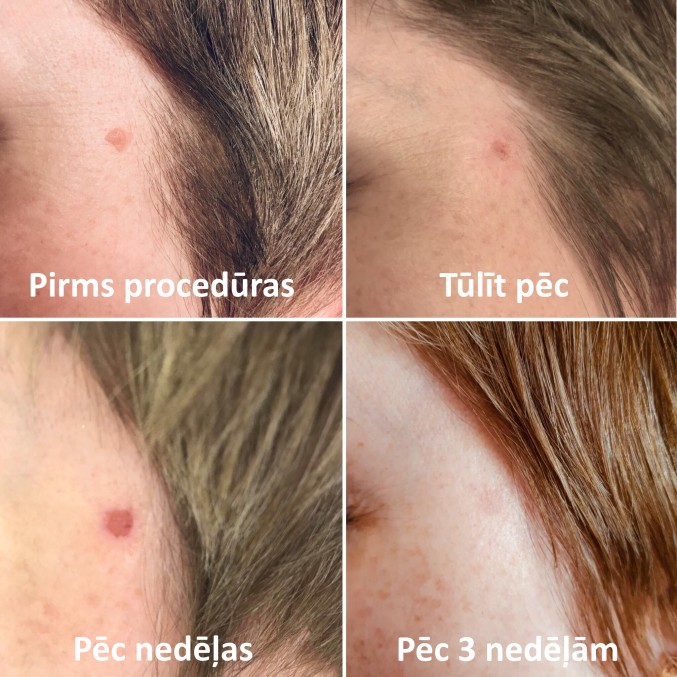 Konkrētajā gadījumā veidojums likvidēts, izmantojot C02 lāzeru. Šīs metodes priekšrocība ir veidojuma robežu noteikšanā – lielisks kosmētiskais efekts, kā arī netiek ietekmētas veselās šūnas.
